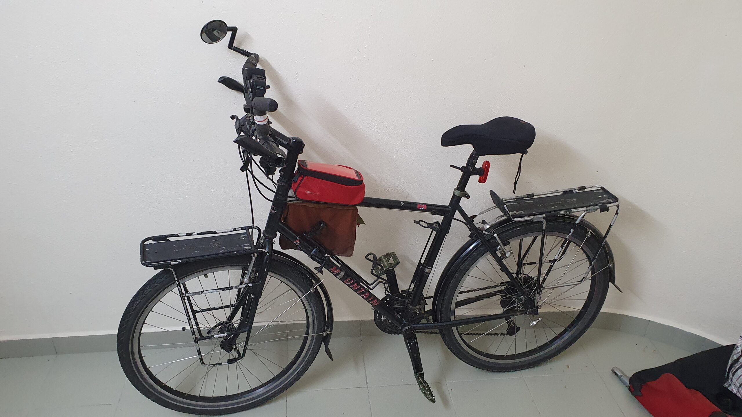 And once the screw was removed, he set about applying his glue and orange powder technique. When he was done with that, he handed it back to me. I was still hoping that the actual welding would start now, but he insisted that welding wasn’t necessary. All I could do was take him at his word. I couldn’t force him to weld. I didn’t even know if he had welding equipment or knew how to weld. Then I asked him to drill the holes in my pannier racks, and that went relatively smoothly. He was the type of mechanic who doesn’t worry that much about precision and prep and looks. If you want a hole drilled, he’s happy to do it, and he will just grab the nearest drill and start drilling. I gave him a bolt that I needed the hole for. I assumed he would carefully measure the bolt’s diameter and then choose a drill bit to match. But that wasn’t how he worked. And he just drilled a hole with whatever bit was in the drill. And then when that turned out to be too small, he used some kind of weird cone-shaped bit to do something else. But the holes were still too small. So now he changed the bit and did it all again. He eventually got the job done, but he drilled each hole three times. He got there in the end. He just took the long road to get there.