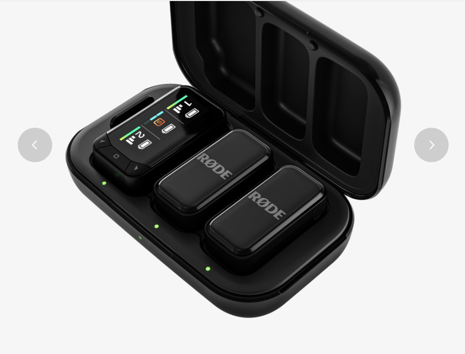 It’s a new version of the original Rode Wireless Micro and includes two small microphone transmitters, a newly designed camera receiver, a smartphone receiver, and a charging case along with accessories such as cables and wind muffs, etc.