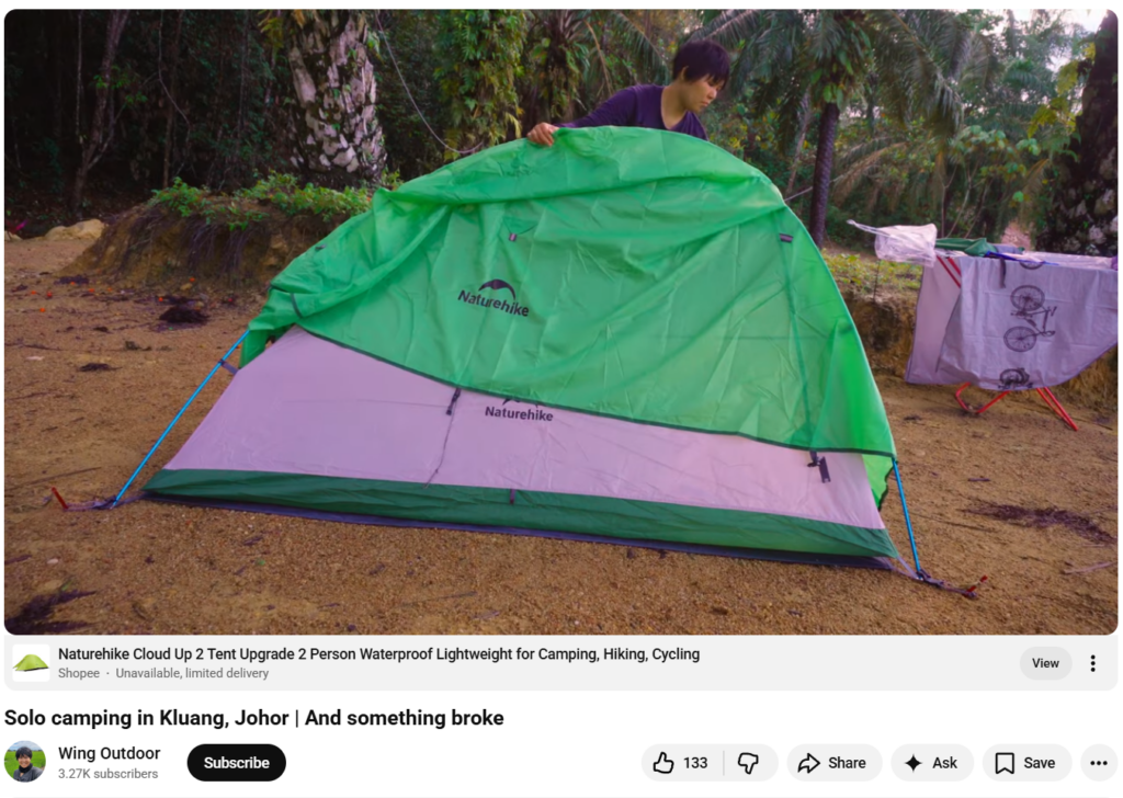 I was watching a video from a new YouTube travel vlogger I’ve started following, and I noticed something interesting. I noticed that as she was setting up her Nature Hike tent, an advertisement for that exact tent showed up on a small bar across the bottom of the video. You can see it up there in that screenshot from YouTube. There’s an ad for the Nature Hike tent running across the bottom of the video screen.