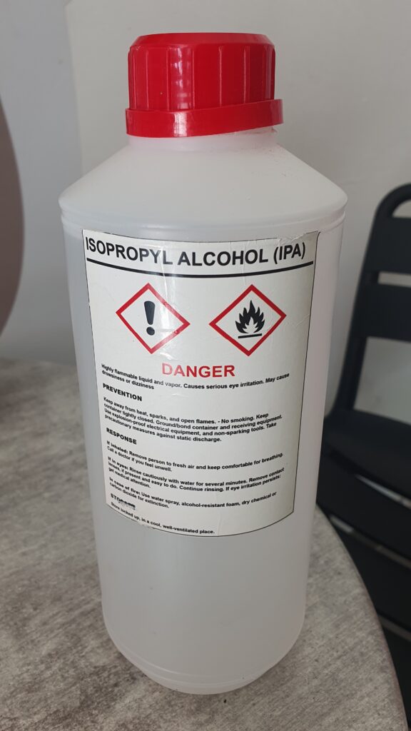 The other day, I was on the hunt for some Isopropyl Alcohol. I’d done some research on how to remove some sticky residue on the floor of my tent, and the Internet told me that Isopropyl Alcohol could do the trick. And I learned that only this type of alcohol would do. When I went to a pharmacy, I found only denatured alcohol, methylated spirits, methanol, things like that, and though that seems very similar, I was told that it would NOT work. I had to get Isopropyl Alcohol.